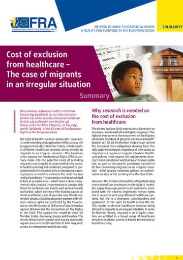The report presents a model to calculate the costs for two medical conditions: hypertension and prenatal care. FRA applied the model to three EU Member States: Germany, Greece and Sweden. Although results must be interpreted with caution, the testing shows that providing access to regular preventive healthcare for migrants in an irregular situation would be cost-saving for healthcare systems. Treating a condition only when it becomes an emergency not only endangers the health of a patient, but also results in a greater economic burden to healthcare systems.